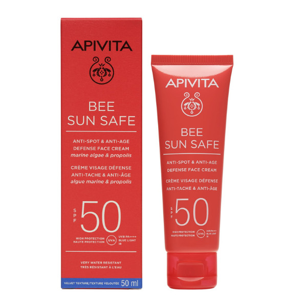 BEE SUN SAFE KREMA ZA LICE PROTIV TAMNIH FLEKA I STARENJA SPF50+ 50ml Sa morskim algama i propolisom. VISOKA ZAŠTITA OD UVA, UVB PA++++, PLAVOG SVETLA I IR ZRAČENJA VISOKA VODOOTPORNOST. Sprečava i smanjuje pojavu tamnih fleka i bora, hidrira kožu zahvaljujući ektraktu morskog komorača, propolisa i morskih algi. Dermatološki testirano. Pogodno za osetljivu kožu. Način upotrebe: Pogledati na unutrašnjosti kutije. Sastav: Aqua/Water/Eau**, Diethylamino Hydroxybenzoyl Hexyl Benzoate, Bis-Ethylhexyloxyphenol Methoxyphenyl Triazine, Ethylhexyl Triazone, Triheptanoin, Dicaprylyl Carbonate, Ethylhexyl Salicylate, C9-12 Alkane, Isoamyl Laurate, Sorbitol, Cocoglycerides, Aqua/ Water/Eau, Glycerin, Glyceryl Stearate Citrate, Parfum/Fragrance, Silica, Sodium Stearoyl Glutamate, Propolis Extract, Crithmum Maritimum Callus Culture Filtrate, Brassica Campestris (Rapeseed) Seed Oil, Rosa Canina Fruit* Extract, Citric Acid, Hydroxypropyl Cyclodextrin, Hydrolyzed Algin, Laminaria Digitata Extract, Aloe Barbadensis Leaf Juice Powder*, Rosmarinus Officinalis (Rosemary) Leaf Extract, Maris Aqua /Sea water/Eau de Mer, Chlorella Vulgaris Extract, Achillea Millefolium* Extract, Hydroxyacetophenone, Triacontanyl PVP, Tocopheryl Acetate, Panthenol, Citronellyl Methylcrotonate, Sclerotium gum, Coco-Caprylate/Caprate, Bisabolol, Cetyl Palmitate, Ethylhexylglycerin, Xanthan Gum, Sorbitan Olivate, Sorbitan Palmitate, Disodium EDTA, Sodium Hyaluronate, Tocopherol, Sodium Benzoate, Potassium Sorbate. *Organic cultivation/ Issu de l’agriculture biologique **Rosa Canina Fruit* Aqueous Infusion=Wild Rose Infusion/ Infusion de rose sauvage Pakovanje: 50ml Uvoznik: Evropalek Doo, Beograd Zemlja porekla: Grčka