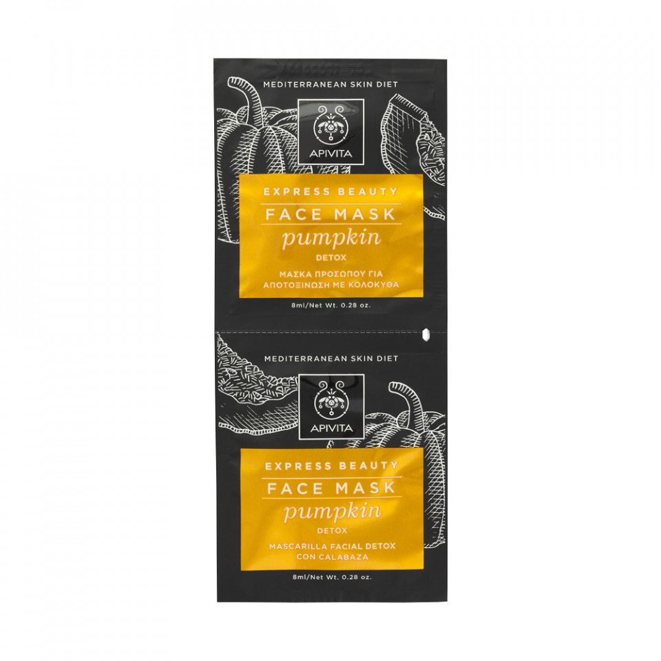 APIVITA EXPRESS BEAUTY DETOX MASKA BUNDEVA Nežno uklanja izumrle ćelije sa površine kože zahvaljujući enzimima bundeve, esencijalnim uljima limuna i đumbira. Koža je detoksikovana, blistava i ujednačene teksture. Za sve tipove kože. Naneti deblji sloj maske na čistu kožu lica izbegavajući zonu oko oka. Ostaviti da deluje 10 minuta. Višak maske ukloniti tupferom, a zatim temeljno isprati. Koristiti 1-2 puta nedeljno.