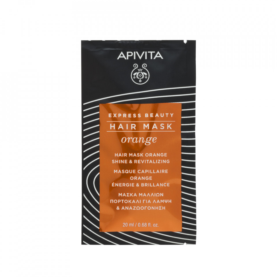 APIVITA EXPRESS BEAUTY MASKA ZA KOSU ZA REVITALIZACIJU Maska idealna za sve tipove kose. Štiti od spoljašnjih agresivnih faktora, hidrira i neguje. Nudi intenzivan tretman koji kosi vraća prirodni sjaj zahvaljujući revitalizirajućim svojstvima esencijalnih ulja pomorandže, limuna, grejpa i 5 vitamina. Maska sa pomorandžom za blistavu I revitalizovanu kosu. Naneti nakon šamponiranja, ostaviti 3-5 minuta i temeljno isprati. Za intenzivniji tretman nanesite na kosu osušenu peškirom, umotajte kosu toplim peškirom i ostaviti da deluje 15-20 minuta.