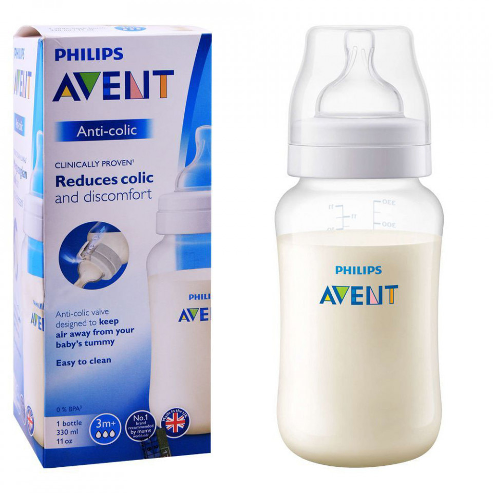 AVENT FLAŠICA ANTI-COLIC Plastična flašica 330ml sa cuclom sa srednjim protokom olakšaće hranjenje i mami i bebi. Dvostruki ventil za sprečavanje stomačnih grčeva, idealna je za kombinovanje dojenja i hranjenja na bočicu Karakteristike: -Flašica 330ml PP (materijal: polipropilen bez BPA) -Cucla sa jedinstvenim laticama, veoma meka i udobna -Cucla je silikonska bez BPA -Prirodno prihvatanje zahvaljujući širokoj cucli oblika dojke – Anticolic ventil dizajniran je tako da smanji gutanje vazduha prilikom hranjenja bebe i na taj način spreči pojavu grčeva, nadutosti i refluksa kod beba. -Zahvaljujući ergonomskom obliku flašice jednostavna je za držanje -Za uzrast od 3 meseca