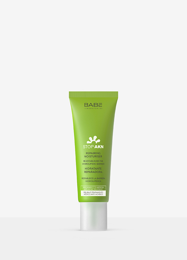 BABE Stop akn repairing moisturiser 50ml Hidratantna krema koja obnavlja kožu koja je na farmakološkoj terapiji akni. Obogaćena niacinamidom i Murmuru buterom, sprečava pojavu akni, ali i obnavlja i čuva kožnu barijeru. Za sve tipove kože, posebno za masnu ili kožu sklonu aknama. Krema se prporučuje kod upotrebe oralnih ili topikalnih retinoida(isotretionoin i sl.) u cilju lečenja akni. Obogaćena 4% niacinamidom deluje sebum-regulativno, sprečava porast bakterijske flore koja uzrokuje akne, a Murmuru puter obnavlja kožnu barijeru trenutno otklanjajući osećaj zatezanja i crvenila usled delovanja lekova. Način upotrebe: Koristi se ujutru i uveče, na suvu i čistu kožu blago umasirati dok potpuno ne upije. Pakovanje: 50ml Zemlja porekla: Španija Sastav: Niacinamid 4%, Murmuru buter 3%, Skvalan 2%, Bisabolol 0.5%, Skinrepair kompleks 0.5%, Vitamin E 0.25%