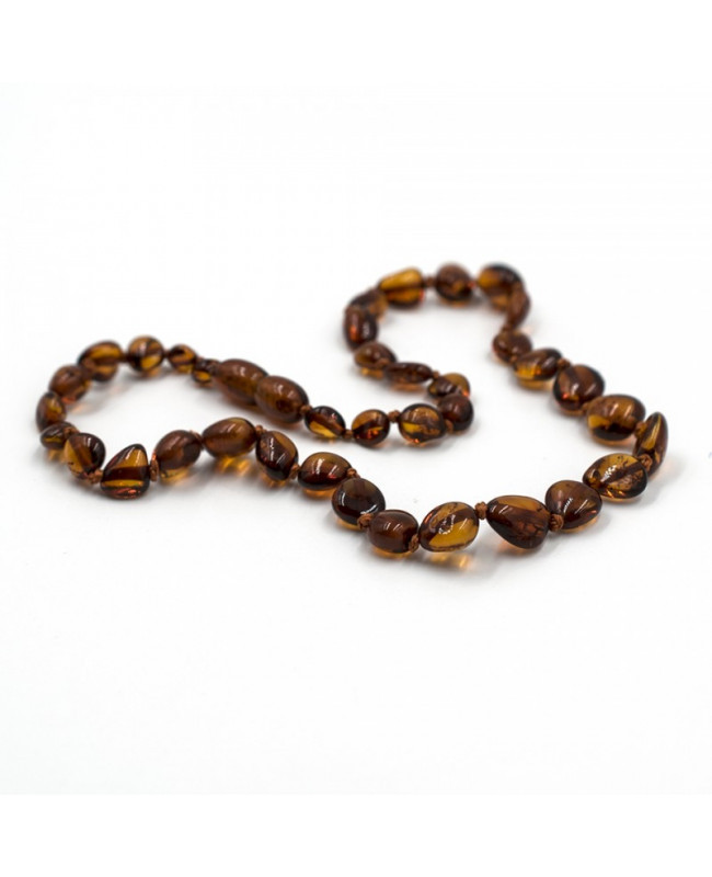 Ogrlice za bebe od ćilibara proizvedene su od 100 % prirodnog baltičkog ćilibara. Za razliku od gelova za desni ili sirupa za ublažavanje bolova, ogrlice od ćilibara su manje nametljivo sredstvo za umirivanje Vašeg deteta koje ima simptome povezane s nicanjem prvih zubića, kao što su nedostatak apetita, želudačni problemi,crvenilo obraza, bolovi u uhu, temperatura i prehlada. Svaki komad nakita je sa mnogo ljubavi ručno izrađen u Litvaniji. Tradicionalni način izrade i nove tehnologije obrade perli od ćilibara čine ogrlice veoma prijatnim za nošenje. Dužina ogrlice: 32cm do 34cm