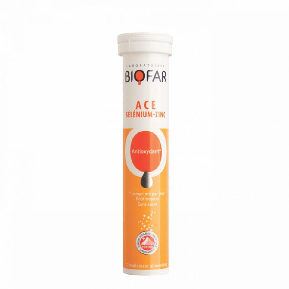 BIOFAR ACE SELEN I CINK 20 ŠUMEĆIH TABLETA Dodatak ishrani sa vitaminima A, C, E i selenom. TriActiv Essential je linija Biofar vitamina proizvedena TriActiv tehnologijom koja obezbeđuje visok stepen bioraspoloživosti i bolje iskorišćenje vitamina i minerala u organizmu. Obogaćene formule sadrže i prirodne koenzime i biljne ekstrakte koji dodatno pojačavaju dejstvo vitamina i minerala u organizmu. Biofar ACE & Se Complex sadrži najznačajnije vitamine i minerale sa antioksidativnim dejstvom. Preporučuje se za održavanje vitalnosti, detoksikaciju organizma, osobama pod stresom i za jačanje imuniteta. Prisustvo luteina sprečava degenerativne promene osetljivih ćelija oka, pa se preporučuje preventivno i starijoj populaciji. Preparat je sa prirodnim bojama i aromom, bez šećera i aspartama, prijatnog voćnog ukusa. Sastav: Vitamin A+beta karoten-800 mcg, vitamin B6-2 mg, vitamin C-60 mg, vitamin E-10 mg, cink-15 mg, selen-50 mcg, L-cistein-70 mg, lutein-1,5 mg. Način upotrebe: Jednu tabletu dnevno rastvoriti u velikoj čaši vode. Ne treba prekoračiti preporučenu dnevnu dozu. Pakovanje: 20 šumecih tableta. Zemlja porekla: Francuska