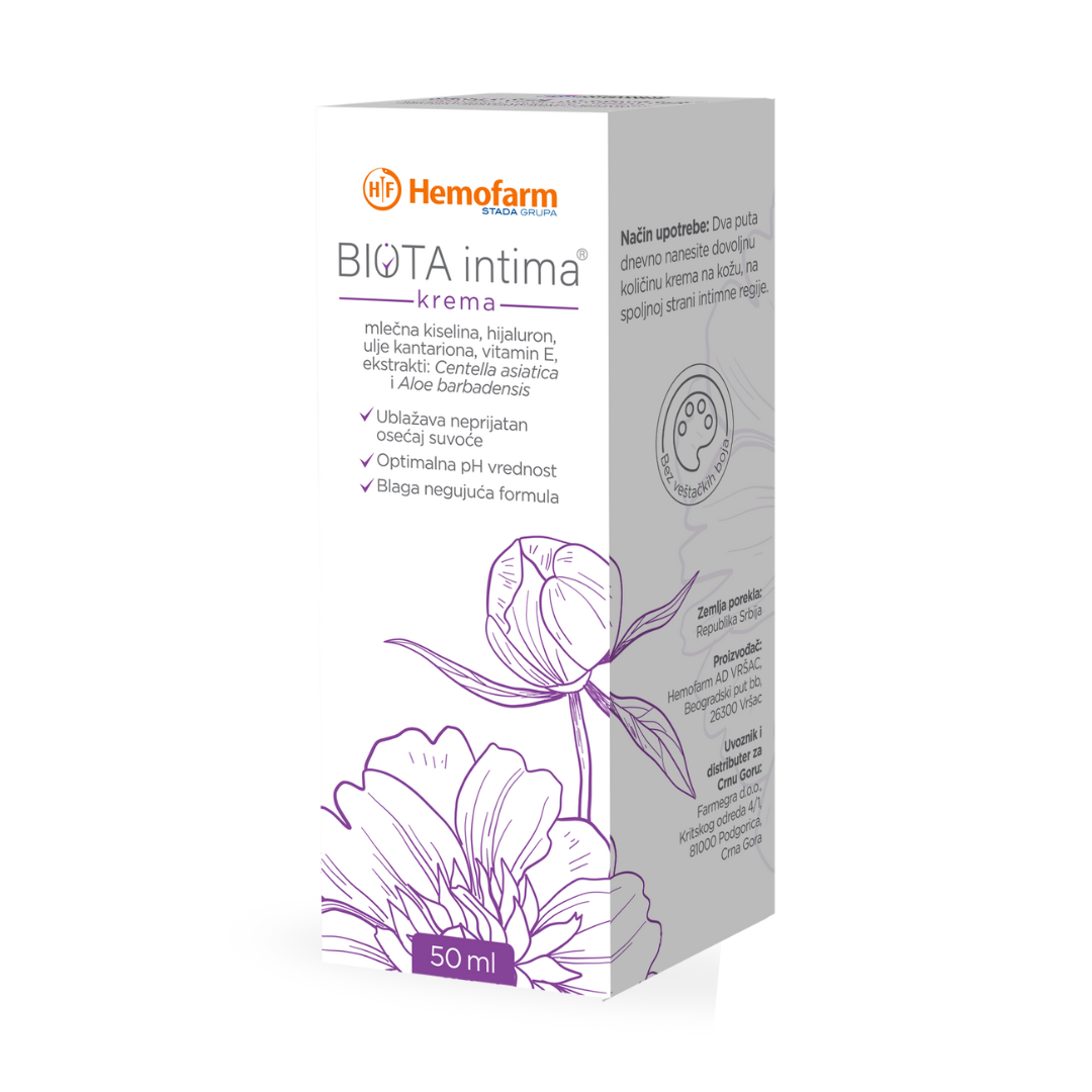 Biota Intima je krema na bazi hijalurona i vitamina E koja zahvaljujući lekovitom sastavu momentalno otklanja simptome vaginalnih infekcija različitog porekla, kao što su neprijatan i uporan svrab, peckanje i crvenilo.