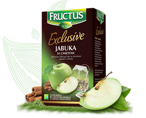 Mešavina biljnog čaja sa aromom jabuke i cimeta 44g (20 filter kesica x 2,2g) Sastojci : plod divlje jabuke 34%, cvet hibiskusa, plod šipka, prirodna aroma jabuke i cimeta 7%, kora pomorandže, list slatke kupine, kora cimeta 3%, aroma cimeta 3%, plod trnjine, jabučna kiselina 1% Uputstvo/ način pripreme: Filter kesicu izvadite iz aroma omotača, stavite u posudu, prelijte sa 2 dl ključale vode i posudu poklopite. Ostavite da stoji 5-10 minuta. Izvadite filter kesicu i zasladite čaj po svom ukusu.