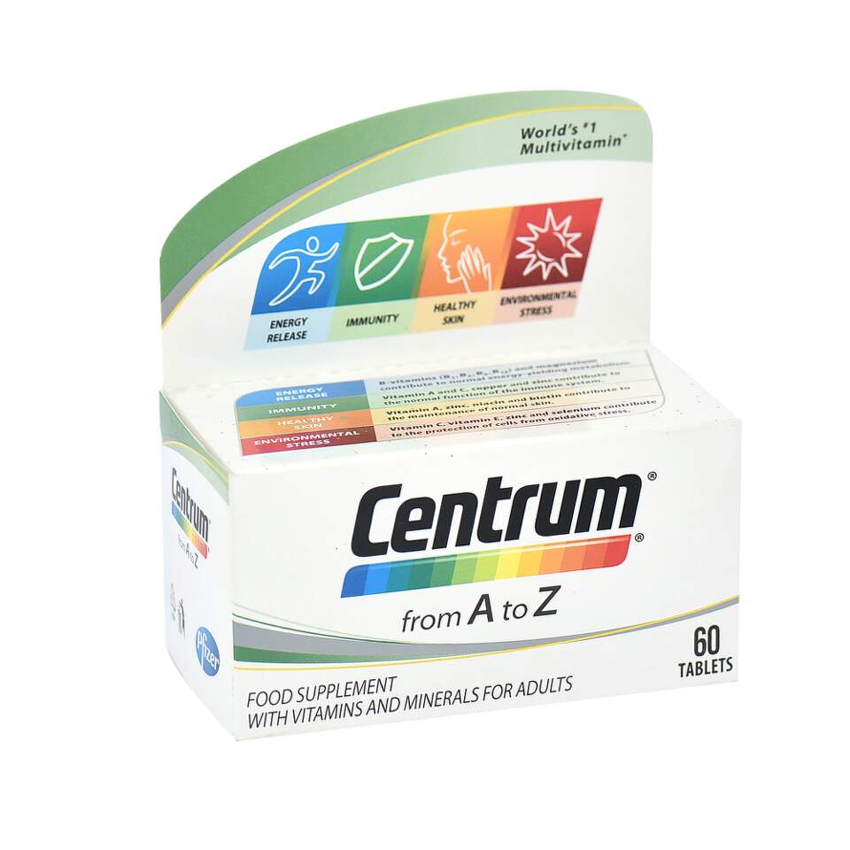 Zahvaljući sastavu, Centrum od A do Ž doprinosi normalnom funkcionisanju organizma – utiče na energiju, imunitet, zdravlje kože i oksidativni stres. Vitamini grupe B (B1, B2, B6, B12) i magnezijum doprinose održavanju normalnog energetskog metabolizma. Vitamin A i C, bakar i cink doprinose normalnoj funkciji imunog sistema. Vitamin A, cink, niacin i biotin doprinose održavanju normalne kože. Vitamini C i E, cink i selen učestvuju u zaštiti ćelija od oksidativnog stresa.