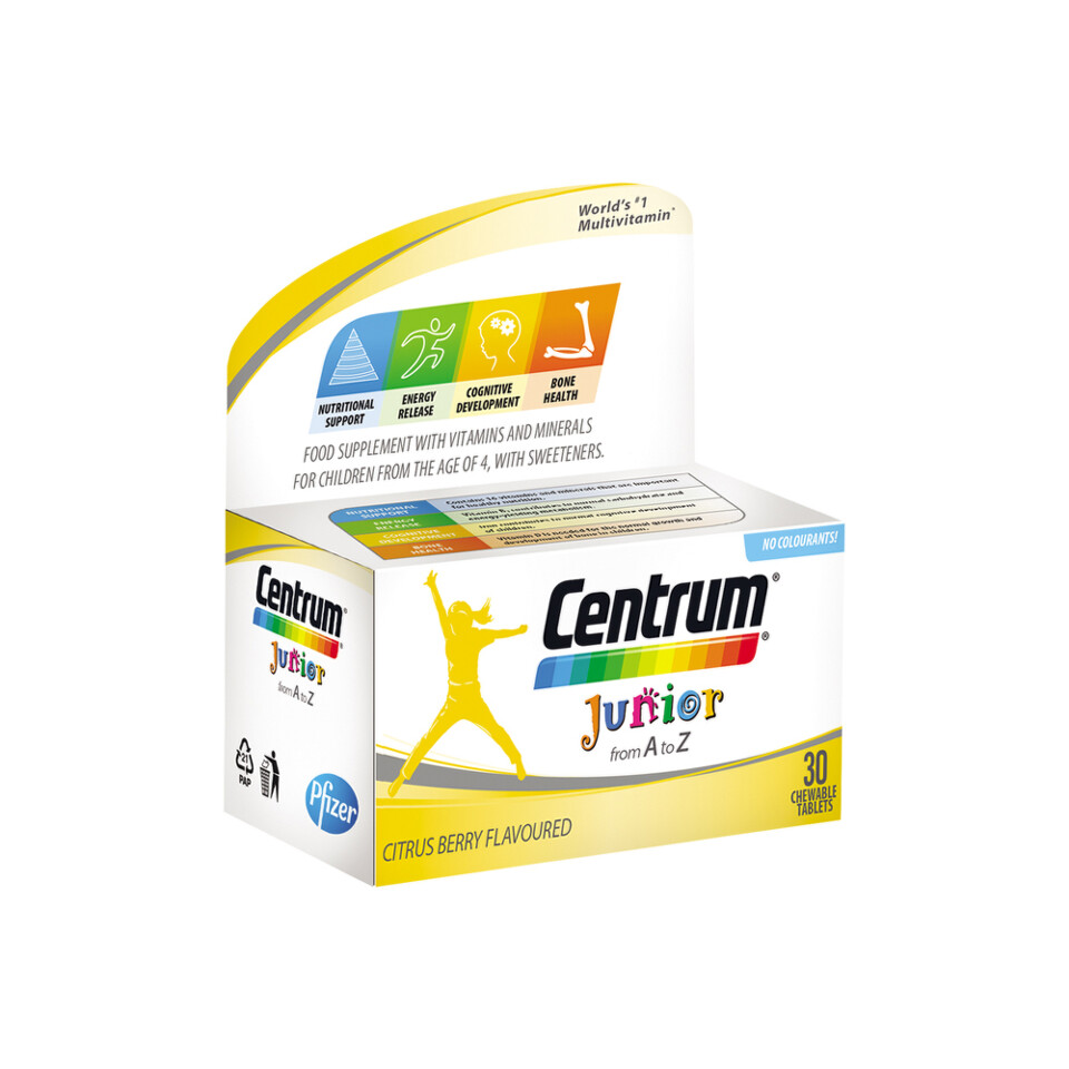 Centrum Junior sadrži 16 vitamina i minerala koji su važni za zdravu ishranu i pravilan razvoj dece i koji utiču na kognitivni razvoj i zdravlje kostiju. Sadrži gvožđe koje doprinosi normalnom kognitivnom razvoju dece i vitamin D koji doprinosi normalnom razvoju i rastu kostiju kod dece. Proizvod je namenjen deci starijoj od 4 godine.