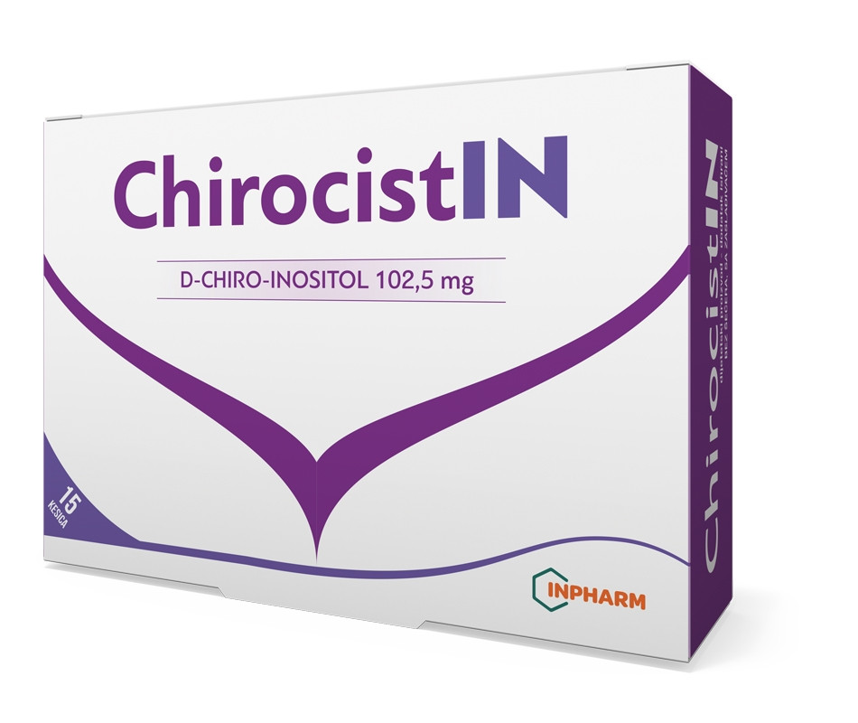ChirocistIN je dodatak ishrani koji se preporučuje za kombinovanu primenu sa PolicistIN-om, u cilju pospešivanja dijetetskog tretmana PCOS i insulinske rezistencije. Inozitol pripada grupi B vitamina i komponenta je ćelijske membrane. Nalazi se u voću, mahunarkama, žitaricama i orašastim plodovima, a proizvodi ga i sam organizam. Inozitol je komponenta inositolfosfoglikana (IPG) koji su „sekundarni prenosioci“ u insulinskoj signalizaciji. D-hiro-inozitol , povećavajući osetljivost tkiva na insulin, može regulisati nivo glukoze u krvi pa na taj način doprineti prevenciji metaboličkog sindroma, koji se u velikom broju slučajeva razvije kao nastavak insulinske rezistencije. Oba aktivna izomera mogu doprineti smanjenju nivoa androgenih hormona. Dodatno, mio-inozitol (jedan od aktivnih sastojaka proizvoda PolicistIN) ostvaruje specifične efekte na jajnike modulirajuci dejstvo FSH koji je značajan u regulaciji normalnog menstrualnog ciklusa i stvaranju jajnih celija. Mio-inozitol i D-hiro-inozitol -poboljšavaju insulinsku osetljivost -smanjuju insulinsku rezistenciju -smanjuju koncentraciju slobodnog testosterona -poboljšavaju iskorišcavanje glukoze -uspostavljaju i normalizuju menstrualni ciklus -poboljšavaju stopu trudnoće Način upotrebe: 1×1 kesica dnevno Pakovanje: 15 kesica