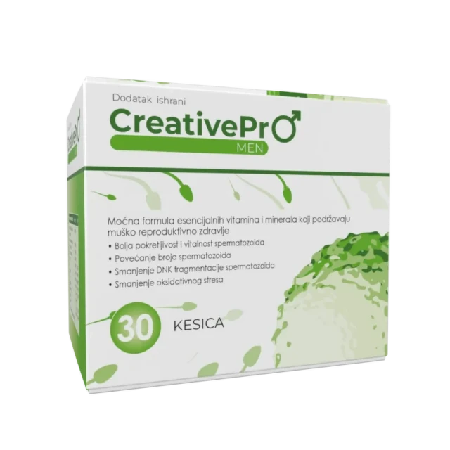 CreativePro Men namenjen je muškarcima sa niskom pokretljivošću ili niskom koncentracijom spermatozoida. Muškarcima sa lošim prehrambenim navikama koji su u deficitu sa određenim hranljivim materijama. Vitamin D, E, C i vitamini B grupe igraju ključnu ulogu u održavanju zdravlja sperme. Muškarcima koji ulaze u starije životno doba (45+ godina) i žele da očuvaju svoje reproduktivno zdravlje. Upotrebom CreativePro Men u periodu od 3 – 6 meseci pružate garantovano svom organizmu podršku za bolji kvalitet spermatozoida.
