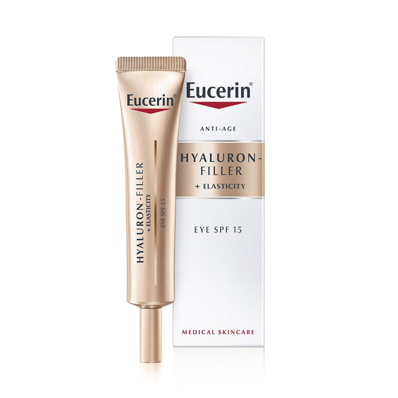 Eucerin Hyaluron-Filler + Elasticity Krema za područje oko očiju SPF 15 Anti-age krema za zrelu kožu sa UVA i UVB zaštitom za područje oko očiju. Ova jedinstvena formulacija pruža višestruke anti-age efekte. Eucerin inovativnu kombinaciju hijaluronske kiseline dugog i kratkog lanca i arktina (komponente koja dokazano ubrzava obnavljanje kolagena u ćelijama kože), popunjava čak i duboke bore. Koža oko očiju je glatka i čvršća i ima blistav, odmoran izgled. Način upotrebe: Naneti ispod i oko regije oko očiju nežnim utapkavanjem na temeljno očišćenu kožu. Sastav: Aqua Glicerin C12-15 Alkyl Benzoate Ethylhexyl Salicylate Octocrylene Hydrogenated Coco-Glycerides Butyl Methoxydibenzoylmethane Synthetic Beeswax Behenyl Alcohol Methylpropanediol Glyceryl Stearate Citrate Bis-Ethylhexyloxyphenol Methoxyphenyl Triazine Stearyl Alcohol Sodium Hyaluronate Arctium Lappa Fruit Extract Pimpinella Anisum Fruit Extract Carbomer Trisodium EDTA Sodium Hydroxide Dimethicone Phenoxyethanol Ethylhexylglycerin 1-2-Hexanediol Pakovanje: 15ml Zemlja porekla: Nemačka Uvoznik: Beiersdorf