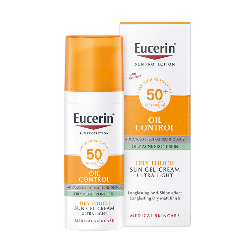 Eucerin Oil control za zaštitu masne kože od sunca SPF 50+ Eucerin Oil control za zaštitu masne kože od sunca SPF 50+ je preparat za zaštitu kože lica od sunca za svaki dan, formulisan za masnu i kožu sklonu aknama. Napredna spektralna tehnologija kombinuje fotostabilne UVA/UVB filtere¹ širokog sprektra za visoku UV zaštitu sa Likokalkonom A koji neutrališe slobodne radikale koje izazivaju UV zraci i vidljiva svetlost visoke energije (HEVIS). Ovaj preparat za zaštitu od sunca takođe sadrži i Gliciretinsku kiselinu koja stimuliše sopstveni mehanizam obnavljanja DNK kože. Sebum regulatorna tehnologija za kontrolu produkcije sebuma sa L-karnitinom i matirajućim mikro-česticama čini kožu trenutno suvom na dodir i pruža dugotrajni efekat protiv sjaja koji traje do osam sati. Ne sadrži parfeme i ima izuzetno laganu, nemasnu teksturu. Klinička i dermatološka ispitivanja pokazuju dobru podnošljivost na osetljivoj koži i na koži sklonoj aknama. 1 – Ispunjava visoke standarde za UVA i UVB zaštitu koje definiše Cosmetics Europe. Nivoi UVA zaštite u preparatima je viši od EU preporuke. Način upotrebe: Nanositi izdašno pre i tokom izlaganja suncu, ponavljati nanošenje da bi se održao odgovarajući stepen zaštite. Sastav: Voda, Homosalate, Polymethylsilsesquioxane, Butyl Methoxydibenzoylmethane, Ethylhexyl Salicylate, Octocrylene, Alcohol Denat, Tapioca Starch, Phenylbenzimidazole Sulfonic Acid, Cyclomethicone, Behenyl Alcohol, Cetearyl Alcohol, Methylpropanediol, Silica Dimethyl Silylate, Glycerin, Carnitine, Glycyrrhetinic Acid, Glycyrrhiza Inflata Root Extract, Sodium Stearoyl Glutamate, Acrylates-C10-30-Alkyl-Acrylate-Crosspolymer, Carbomer, Xanthan Gum, Sodium Hydroxide, Sodium Chloride, Trisodium EDTA, Ethylhexylglycerin, Phenoxyethanol Pakovanje: 50ml Zemlja porekla: Nemačka Uvoznik: Beiersdorf
