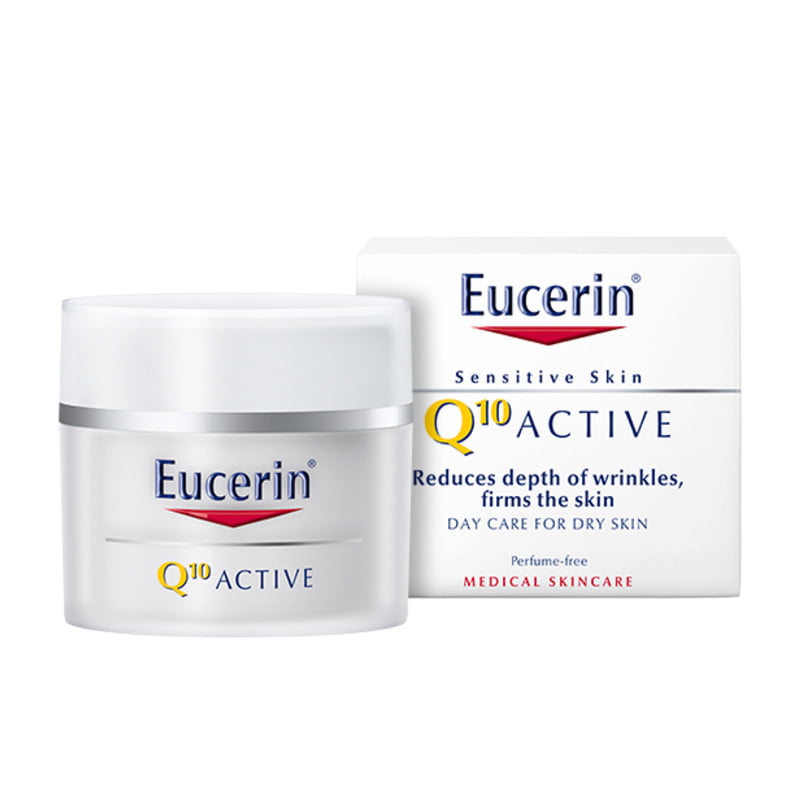 Formulacija protiv bora sa koenzimom Q10 za suvu, osetljivu kožu Eucerin Q10 ACTIVE Dnevna krema za suvu kožu je specijalno formulisana sa konezimom Q10, koji daje energiju ćelijama i predstavlja supstancu koja prirodno nastaje u koži, za borbu protiv znakova starenja kao što bore na osetljivoj koži*. Dodati antioksidansi vitamini C, E i H (biotin) hrane suvu kožu i smanjuju upale, tako da je koža bolje zaštićena od napada slobodnih radikala. Formulisana bez mirisa, veštačkih boja i alkohola za suvu, osetljivu kožu koja se lako iritira. Redovnom upotrebom, koža deluje nežnija i čvršća. Bez parabena ili veštačkih koloranta da bi se pružila dobra podnošljivost na koži. * In vitro studije Način upotrebe: Nežno umasirajte preparat na temeljno očišćenu kožu lica, vrata i dekoltea nežnim pokretima na gore. Sastav: Voda, Glycerin, Ethylhexyl Cocoate, Hydrogenated Coco-Glycerides, Stearyl Alcohol, Butylene Glycol, Cetyl Alcohol, Caprylic-Capric-Triglyceride, Butyrospermum Parkii Butter, Glyceryl Stearate Citrate, Octyldodecanol, Tocopheryl Acetate, Ubiquinone, Biotin-Vitamin-B7, Biosaccharide Gum-1, Sodium Ascorbyl Phosphate, Sodium Carbomer, Trisodium EDTA, Zea mays, Beta-Carotene, Tocopherol, 1-2-Hexanediol, Dehydroacetic Acid, Phenoxyethanol Pakovanje: 50ml Zemlja porekla: Nemačka Uvoznik: Beiersdorf