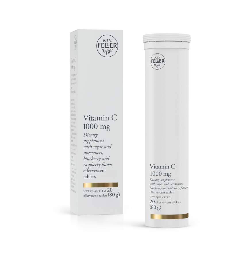 Vitamin C je jedan od najpoznatijih i najčešće korišćenih vitamina danas. Vitamin C doprinosi normalnoj funkciji imunološkog sistema, kao i normalnoj funkciji imunološkog sistema tokom i nakon intenzivne fizičke aktivnosti, smanjujući umor i iscrpljenost, i normalnoj proizvodnji kolagena za normalnu funkciju kože, kostiju, hrskavice, zuba , desni i krvni sudovi. m.e.v. Feller® Vitamin C 1000 mg u preporučenoj dnevnoj dozi (1 šumeća tableta) sadrži 1000 mg vitamina C što je 1250% preporučenog unosa. Dolazi u pakovanju od 20 šumećih tableta.