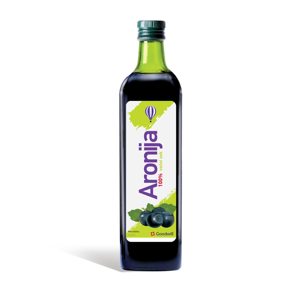 Goodwill Aronija je 100% prirodan sok od crnoplodne aronije, bez dodatog šećera, aroma i konzervansa. Bogata je prirodnim antioksidansima, vitaminima i mineralima koji doprinose jačanju imunog sistema, poboljšanju cirkulacije i zaštiti ćelija od oksidativnog stresa. Aronija je poznata kao jedno od najjačih prirodnih “supervoća” i doprinosi opštem zdravlju i vitalnosti organizma.