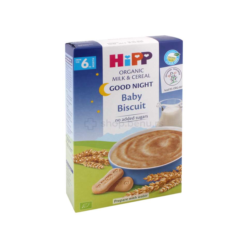 Hipp instant kaša sa keksom predstavlja ogranski proizvod. Sadrži žitarice od celog zrna u kombinaciji sa keksom. Bogata je vitaminima, mineralima i sadrži adaptirano mleko koje odgovara uzrastu beba. Preporučuje se za bebe od 6. meseca.