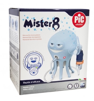 INHALATOR PIC MISTER 8 Dizajn prilagođen deci Zabavan, nežan i umirujuć… ali i praktičan Brži i tiši! Dolaze zajedno sa Pic Acti Fast Pro raspršivačem Tiša micro-piston tehnologija Pribor koji dolazi sa inhalatorom: Ugrađen držač za raspršivač 2 meke ergonomske maske za odrasle i decu Pregrada za čuvanje pribora Mesto predviđeno za sušenje pribora Tehnologija micro-piston • Napajanje Ac Adapter100-240V 50/60Hz 12V2A • MMAD 0,30 ml/min • Disajna frakcija >75% • Maksimalni protok 12 ± 2 l/min • Maksimalni pritisak 2 ± 04 bar • Kapacitet raspršivaca 10ml Max / 2ml Min • Uslovi korišcenja 20’ on – 40’ o at 40°C • Nivo buke@50cm** <59.9 dB (A) • Operativni pritisak 0.6 ± 0.18 bar • Operativni protok 5 ± 1 l/min **Podaci o nivou buke su mereni korišcenjem novog uređaja. Vrednosti mogu da variraju tokom vremena i sa upotrebom