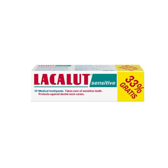 Lacalut Sensitive pasta predstavlja jedinstveni proizvod iz Lacalut linije proizvoda za oralnu higijenu koja je specijalno dizajnirana da ojača desni uz negu osetljivih zuba. Zahvaljujući njenoj specijalnoj formulaciji, ova pasta vidno smanjuje osetljivost zuba, na slatko, kiselo, vruće i hladno. Pakovanje: 100ml. Proizvod je dostupan i u ambalaži od 75ml. Oralna higijena.