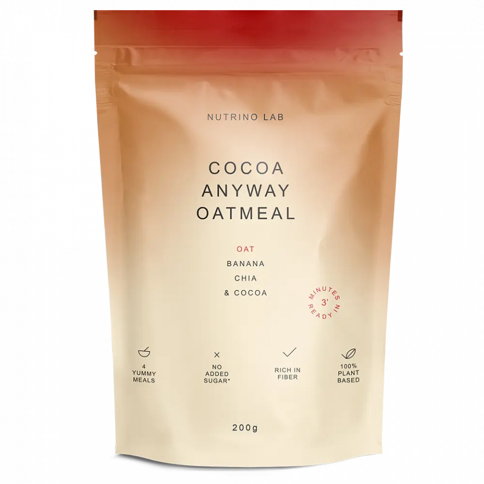Nutrino Lab Cocoa Anyway Ovsena Kaša 200g Cocoa Anyway Oatmeal za pokretanje dana u velikom stilu. Neodoljiva ovsena kaša sa kakaom je osmišljena za istinske ljubitelje čokolade koji ne pristaju na ništa manje od vrhunskog ukusa, ali tragaju za zdravom alternativom. Započni dan sa laganom kombinacijom hranljivog ovsa i voća, obogaćenom čija semenom i neodoljivim kakaom, bez šećera i konzervansa. Zdrava užina, 100% na biljnoj bazi, bogata vlaknima, bez dodatog šećera i konzervansa spremna za 3 minuta. Način upotrebe: 50g (oko 5 supenih kašika) proizvoda sipati u posudu, preliti sa 80 ml vrele vode i dobro promešati. Ostaviti da odstoji 3-5 min. Prekomerna upotreba može da izazove laksativni efekat. Sastav: Ovsene pahuljice 66%*, zaslađivač: maltitol, maltodekstrin, liofilizovana banana 3%*, mlevene chia semenke 2%, kakao prah 2%*, vanilin 0,1%. Može da sadrži mleko. Pakovanje: 200g