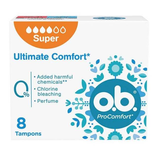 Probaj o.b. PROCOMFORT™ koji obezbeđuje lakše postavljanje i uklanjanje, zahvaljujući SILKTOUCH™ omotaču! o.b. PROCOMFORT™ omogućava lakše postavljanje i uklanjanje zahvaljujući jedinstvenom SILKTOUCH™ omotaču, a pouzdanu zaštitu obezbeđuje zahvaljujući revolucionarnoj DYNAMICFIT™ tehnologiji 3D proširenja koje se nakon postavljanja prilagođava tvom telu i pomaže da se tečnost efikasno rasporedi unutar tampona putem isprepletenih kanalića. o.b. PROCOMFORT™ Super se preporučuje za dane sa jakim krvarenjem. Zaštita tokom ciklusnih dana. Pakovanje: 8 komada