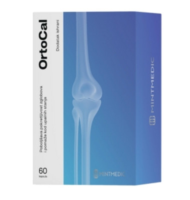 Ortocal 60 kapsula OrtoCal je dijetetski proizvod namenjen očuvanju zdravlja zglobova, održavanju strukture zglobova i njihove normalne funkcije. OrtoCal kapsule sadrže patentiran kompleks sa kalcijumom i kolagenom – CalGo® i hijaluronsku kiselinu, ekstrakt smole tamjana, đumbir, vitamine D3 i K2, minerale bakar i mangan, koji pružaju potpunu podršku koštanom matriksu. CalGo® predstavlja inovativnu formulu koja sadrži prirodni morski nedenaturisani kolagen tip II i čist izvor mikrokristalnog hidroksiapatitnog kalcijuma iz kostiju norveškog lososa. Formula CalGo® je takođe bogata fosforom i cinkom koji uz helirane amino kiseline iz kolagena podržavaju funkciju hrskavice, zdravlje zglobova i jačinu kostiju. Način upotrebe: Odrasli: 2 puta dnevno popiti po 1 kapsulu. Napomene: Dodaci ishrani se ne mogu koristiti kao zamena za raznovrsnu i uravnoteženu ishranu! Čuvati van domašaja dece. Upozorenja: Preporučene dnevne doze se ne smeju prekoračiti! Proizvod ne treba da uzimaju osobe preosetljive na neki od sastojaka proizvoda. Proizvod nije namenjen trudnicama, dojiljama i mlađima od 18 godina. Prekomerna upotreba može izazvati laksativni efekat. Način čuvanja: Čuvati u originalnom pakovanju, zaštićeno od svetlosti i vlage na temperaturi do 25°C. Neto količina: 32,56 g SASTAV: Sadržaj aktivnih komponenti 1 kapsula 2 kapsule Riblji kolagen (CalGo®) 62,5 mg 125,0 mg Suvi ekstrakt smole tamjana (Boswellia serrata) – standardizovano na 65% bosvelinske kiseline 100,0 mg 65,0 mg 200,0 mg 130,0 mg Suvi ekstrakt korena đumbira (Zingiber officinalis) – standardizovano na 5% gingerola 50,0 mg 2,5 mg 100,0 mg 5,0 mg Hijaluronska kiselina (natrijum-hijaluronat) 5,0 mg 10,0 mg Vitamin D3 (holekalciferol) 5,0 µg 10,0 µg Vitamin K2 (menahinon-7) 25,0 µg 50,0 µg Bakar (bakar-citrat) 1,0 mg 2,0 mg Mangan (mangan-glukonat) 2,0 mg 4,0 mg Ostali sastojci: hidroksipropil-metilceluloza (kapsula), mikrokristalna celuloza (sredstvo za povećanje zapremine), magnezijum-stearat (sredstvo protiv zgrudnjavanja), titan-dioksid i žuti oksid gvožđa (boja). CalGo® predstavlja inovativnu formulu koja sadrži prirodni morski nedenaturisani kolagen tip II i čist izvor mikrokristalnog hidroksiapatitnog kalcijuma iz kostiju norveškog lososa. Kalcijum u obliku mikrokristalnog hidroksiapatita (MCHA) je 100% identičan molekulu kalcijuma koji se prirodno nalazi u ljudskim kostima. U poređenju sa drugim oblicima kalcijuma, MCHA obezbeđuje bolju apsorpciju, bioraspoloživost i bioiskoristljivost kalcijuma u organizmu. Tamjan, sveto drvo ili indijski tamjan je drvenasta biljka poreklom iz Indije gde se tokom cele godine skuplja njegova aromatična smola. Ekstrakt i ulje kore drveta tamjana se tradicionalno koriste u indijskoj medicini u lečenju reumatodnog artritisa, bola u zglobovima, astme, hroničnog bronhitisa, bolnih menstruacija, loše cirkulacije…Glavne aktivne komponente ekstrakta tamjana su bosvelinske kiseline koje poseduju antiinflamatorna i analgetička svojstva. Đumbir je višegodišnja biljka tropskih i subtropskih krajeva, a koristi se njen osušeni rizom. Rizom sadrži do 3% etarskog ulja, a osnovu etarskog ulja predstavljaju sekviterpenski derivati (zingiberen, zingiberol, kurkumen). Određene studije su pokazale antitrombotičko i antioksidantno dejstvo đumbira, kao i stimulušuće dejstvo na sekreciju salive i digestivnih sokova. Hijaluronska kiselina je glavni sastojak sinovijalne tečnosti koja se nalazi u zglobovima. Nepohodna je za podmazivanje zglobne hrskavice. Starenjem organizma proizvodnja hijaluronske kiseline se postepeno smanjuje, što dovodi do smanjenja viskoznosti i sve većeg razređenja sinovijalne tečnosti, zbog čega zglobovi postaju bolni i teško pokretljivi. Slično je i kod osteoartritisa, kada hrskavica i druge zglobne strukture počinju da propadaju, a upalni proces u zglobovima dovodi do smanjene proizvodnje hijaluronske kiseline, što za posledicu ima smanjeno podmazivanje zglobova. Vitamin D3 (holekalciferol) spada u grupu liposolubilnih vitamina sa značajnim fiziološkim efektima. Regulacija njegovog metabolizma je kompleksna i u njoj učestvuju kalcijum, fosfat i hormoni, od kojih je najvažniji PTH (paratireoidni hormon). Dva najvažnija mehanizma pomoću kojih vitamin D održava normalne koncentracije kalcijuma i fosfata su olakšavanje resorpcije kalcijuma i fosfata iz creva i ubrzavanje njihove mobilizacije iz kostiju. U nedostatku vitamina D resorpcija kalcijuma i fosfata iz digestivnog trakta je značajno smanjena. Usled toga dolazi do lučenja PTH u većoj količini, koji vrši mobilizaciju kalcijuma iz kostiju. To dovodi do demineralizacije kostiju koja se može manifestovati rahitisom kod dece, odnosno osteomalacijom i osteoporozom kod odraslih. Uloga vitamina D je da spreči demineralizaciju i deluje preventivno kod ovih procesa. Vitamin K2 (menahinon) spada u grupu liposolubilnih vitamina, primarno se nalazi u lisnatom zelenom povrću i ima dokazane biološke efekte. U prirodi postoji u biljkama kao fitomenadion (K1) i kao menahinon (K2) koji sintetišu bakterije u crevima. Relativno novijim studijama pokazano je da vitamin K2 (menahinon) učestvuje u modulaciji osteokalcina i održavanju zdravlja koštanog tkiva i može se smatrati korisnim u prevenciji osteoporoze. Bakar je esencijalni mikroelement koji ulazi u sastav većeg broja enzima i proteina, u okviru kojih ima ulogu u ćelijskom disanju, sintezi melanina, formiranju vezivnog tkiva, zaštiti ćelija od dejstva slobodnih radikala. Značajan je i za formiranje kolagena, sazrevanje eritrocita i leukocita, metabolizam glukoze i holesterola, imune funkcije, zdravlje kostiju. Mangan je esencijalan za razvoj kostiju i normalno funkcionisanje nervnog sistema, kao i za reproduktivne procese. Sa vitaminom K učestvuje u procesu koagulacije krvi, dok je sa hromom neophodan za sintezu insulina i normalnu iskoristljivost glukoze u organizmu.