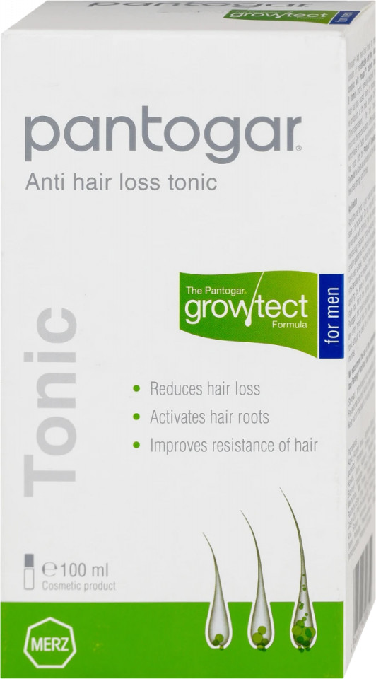 Opis proizvoda: Tonik protiv opadanja kose Za muškarce Čini kosu otpornijom Prijatnog je mirisa Ne ostavlja tragove na koži glave i kosi pantogar tonik protiv opadanja kose za muškarce, sadrži još veću koncentraciju efikasne Growtect formule za aktivaciju korena dlake. Osim kofeina, ova specijalna komponenta, usporava gubitak kose i čini je otpornijom. Prijatnog je mirisa i ne ostavlja tragove na koži glave i kosi. pantogar tonik protiv opadanja kose za muškarce pogodan je za svakodnevnu upotrebu i svaki tip kose. Sastojci: AQUA. ALCOHOL DENAT. BUTYLENE GLYCOL. PROPANEDIOL. PANTHENOL. CAFFEINE. HYDROLYZED KERATIN. BIOTIN. APIGENINE. OLEANOLIC ACID. BIOTINOYL TRIPEPTIDE-1. ACETYL CYSTEINE. ACETYL METHIONINE. MILK PROTEIN. INOSITOL. LACTOSE. PANTHENYL ETHYL ETHER. PEG-40 HYDRO