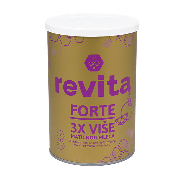 REVITA ORANGE FORTE 1000G Revita Orange Forte – dijetetski proizvod na bazi matičnog mleča. Sadrži 3 puta više matičnog mleča, za još veću otpornost i brži oporavak organizma. Prirodna aroma narandže, obogaćena C vitaminom i prirodnom bojom beta-karotena. Pogodan za: – jačanje imuniteta, – povećane otpornosti na stres, – za decu, – za sportiste, – za osobe izložene povećanim umnim i fizičkim naporima, kao i zagađenjima u radnom i životnom okruženju. Način upotrebe: Dve kafene kašičice proizvoda (12g) rastvoriti u čaši vode (0,2l). Pakovanje: 1000g Zemlja porekla: Srbija