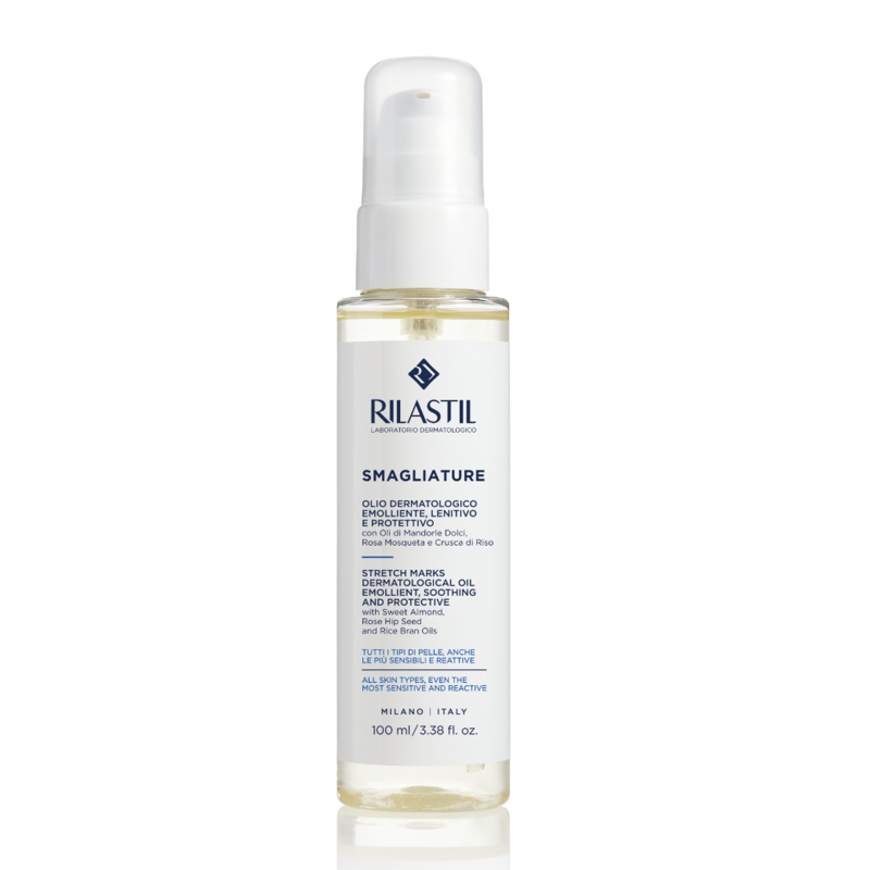 Dermatološko ulje koje ima umirujući, intenzivno hranljiv efekat i poboljšava elastičnost kože. Sadrži 100% prirodne sastojke (ulje badema, semena šipka i pirinčanih mekinja) i vitamin E. Poboljšava tonus i elastičnost kože i pomaže u sprečavanju pojave strija. Idealan za preliminarnu pripremu areola i bradavica i za prevenciju ragada tokom dojenja. Deluje umirujuće i intenzivno hrani, za meku i baršunastu kožu. Čini kožu elastičnom, uz očuvanje površinskog hidrolipidnog filma. Hipoalergeno. Klinički i dermatološki testirano. Bez parfema. Klinički testirano tokom trudnoće i dojenja. Testirano na 5 metala (nikl, hrom, kobalt, paladijum i živa). Doziranje i način primene Nanesite ujutru i uveče na stomak, bokove, butine i grudi. Za posebno neelastičnu kožu, preporučuje se upotreba Rilastil kreme za strije u poslednjem trimestru trudnoće. Ulje može da se koristiti za pripremu areole i bradavice za dojenje. Ako se koristi tokom laktacije, treba slediti uobičajen režim higijenske prakse. Izbegavati kontakt sa očima. Sastav Prunus amygdalus dulcis (sweet almond) oil • caprylic/capric triglyceride • rosa moschata seed oil • oryza sativa (rice) bran oil • tocopheryl acetate • ascorbyl palmitate. Pakovanje:100ml