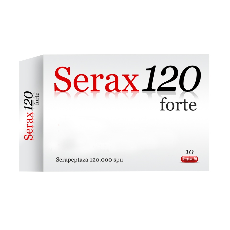 Serax forte je dodatak ishrani koji sadrži po jednoj kapsuli 120 000 spu enzima serapeptaza. Serapeptaza je enzim koji pokazuje antiinflamatorno, analgetičko, antiedematozno i fibrinolitičko dejstvo. Ovaj enzim smanjuje zapaljenski efekat, zato je preporučljiv osobama koje boluju od inflamatornih poremećaja praćenih otocima i bolom.