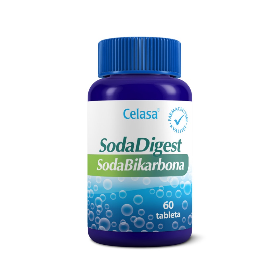 SODADIGEST SODA BIKARBONA 60 TABLETA Soda bikarbona je efikasan, brzo delujući antacid, sredstvo koje neutrališe višak želudačne kiseline. Kao slabo alkalna supstanca, umanjuje kiselost želuca, normalizujući njegov pH i samim tim dovodi do smanjenja simptoma gorušice. Pojačana kiselost želudačnog sadržaja je često uzrokovana konzumiranjem kisele i masne hrane, kafe i alkohola. Praćeno je nizom neprijatnih simptoma: bolovi u stomaku, kiselo podrigivanje, peckanje ili žarenje u predelu grla i želuca. Oštećenje želudačne sluznice može uzrokovati nastanak gastritisa ili čira na želucu, pa je potrebno povećanu kiselost želuca tretirati blagim antacidima, kao sto je soda bikarbona. Aktivna supstanca u tabletama Soda bikarbona , Natrijum hidrogenkarbonat , farmaceutskog je kvaliteta, prečišćena i detaljno ispitana, pa samim tim efikasnija i bezbednija za upotrebu od prehrambene. Sastav: natrijum hidrogenkarbonat (E 500) 500 mg Preporučuje se: za alkalizaciju digestivnog trakta za neutralizaciju kiselosti i smanjenje simptoma gorušice za eliminaciju lošeg zadaha Način upotrebe: Savetuje se uzimanje tableta nakon obroka sa mlakom vodom ili drugim napitkom. Pakovanje: 60 tableta zemlja porekla: Srbija