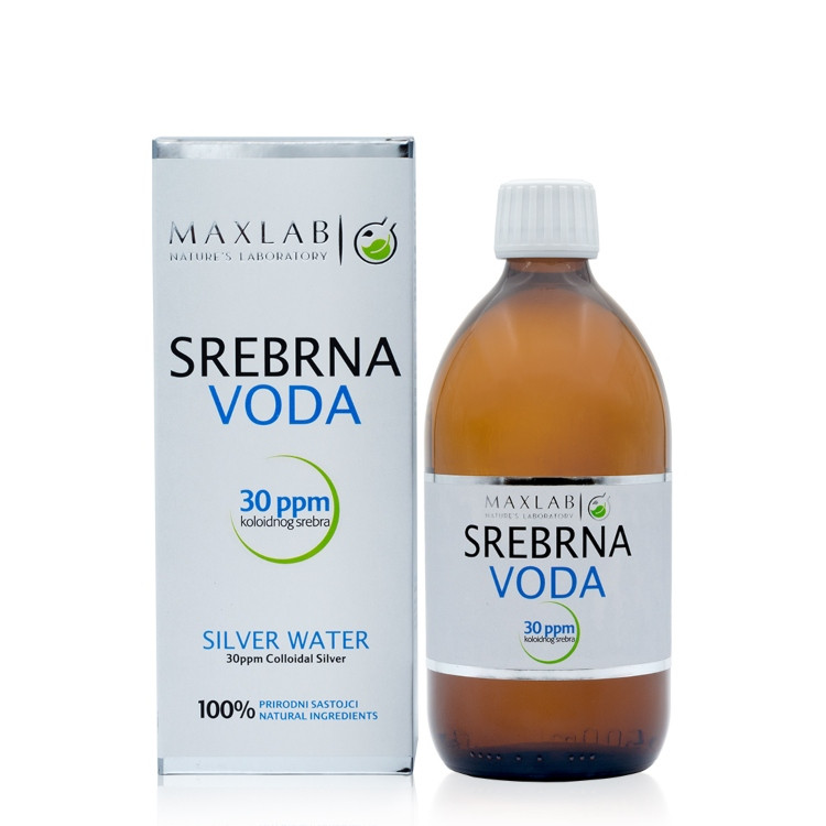 Najefikasniji i potpuno prirodan branilac vašeg organizma. Veća koncentracija srebrne vode 30 ppm pogodna je za bržu regeneraciju i hidrataciju kože lica i tela. Jako blagotvorno deluje nakon hirurških intervencija posebno kod ljudi koji su alergični na etarska ulja, kao i kod osoba sa problemtičnom kožom (akne i bubuljice), kod osoba sa seborejom i peruti, kao i za održavanja higijene intimnih delova kože. Poboljšanje opšteg stanja organizma. Održava optimalan nivo imunog sistema. Eliminiše kandidu, ešerihiju koli i salmonelu. Eliminiše neugodan miris iz usta. Blagotvorno deluje kod urinarnih infekcija i zapaljenja mokraćnih kanala, intenzivno znojenje i neprijatan miris nogu (atletsko stopalo). Blagotvorno deluje kod infekcija grla i desni. Način upotrebe U slučaju infekcija organizma, koristiti dozator u pakovanju, dozirati prema uputstvu i koncentraciji. Za potrebe oralne higijene, srebrnu vodu aplicirati u grlo, usta ili na desni, nekoliko puta u toku dana, po potrebi. Za čistije i belje zube, vodu mućkati u ustima destak sekundi. U slučaju akni, bubuljica, seboreje ili peruti, srebrna vodu naneti na čistu i suvu kožu lica i tela. Nakon nanošenja, srebrnu vodu ne brisati, već pustiti da deluje dok se koža prirodno suši. Sastav Koloidno Srebro: 30 mg/l Sadržaj u 15ml* : 0.45 mg Ostali sastojci: Visoko prečišćena voda