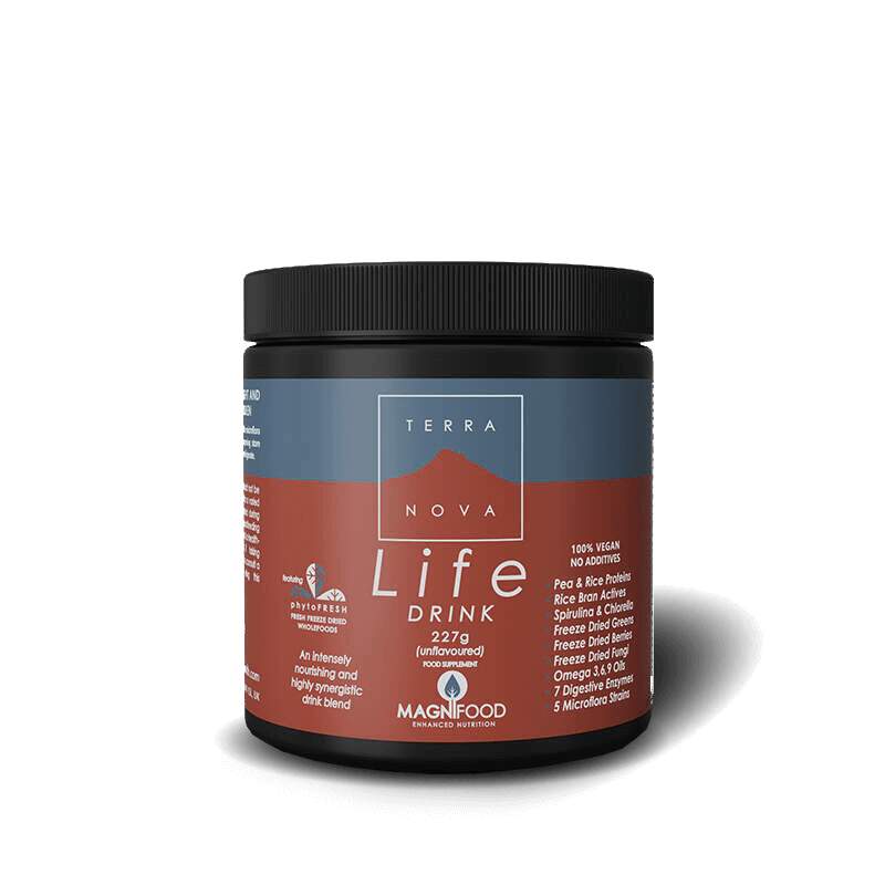 Proteini graška i pirinča u kombinaciji sadrže sve potrebne esencijalne aminokiseline. Deset liofiliziranih zelenih biljaka, spirulina i hlorela predstavljaju bogat izvor antioksidanasa, hlorofila, karotenoida, enzima, vitamina i minerala. Terranova Life Drink šejk se preporučuje kao podrška rekonvalescenciji i podrška ljudima koji su pod stresom i sa manjkom vremena. Idealan je za sportiste i za starije ljude, koji odbijaju hranu. Šejk je prirodna, enzimski bogata hrana. Popravlja kiselo-bazičnu ravnotežu u ishrani, preporučuje se kod jednolične ishrane i dijeta, kao i kod nedovoljnog unosa proteina.
