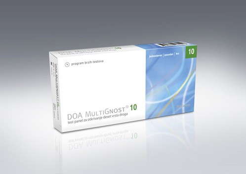 DOA MultiGnost test paneli sadrže test trake za brzo otkrivanje ilegalnih droga u mokraći. Pakovanje je namenjeno jednokratnom korišćenju. Većina droga koje se najčešće koriste u ovom podneblju mogu se istovremeno otkriti test panelom u roku od samo 5 minuta. DOA MultiGnost panel pločice brzi su imunohromatografski testovi za istovremeno kvalitativno otkrivanje više vrsta opojnih droga i njihovih metabolita u mokraći. Rezultati dobijeni testiranjem mogu se potvrditi metodom gasne hromatografije s masenom spektrometrijom (GC/MS). DOA MultiGnost 5 otkriva pet vrsta droga koje se najčešće konzumiraju: marihuanu, amfetamin, opijate, kokain i ecstasy. Obzirom da se nakon konzumacije metamfetamina deo izlučuje u mokraći u obliku amfetamina, test će amfetaminskom trakom otkriti i konzumente metamfetamina. DOA MultiGnost 10 , pored navedenih droga, jednom trakom otkriva konzumente metamfetamina, barbiturata i metadona, a opijate (heroin) otkriva s dve trake pod nazivima „MOP” i „OPI” koje omogućavaju bolji uvid u količinu droge koja je konzumirana Pakovanje: 1 test Test multignost je medicinsko sredstvo, i prodaja putem interneta i/ili pošte nije dozvoljena. Možete ga pronaći u našim apotekama. Za više informacija obratite se na kontakt telefon.