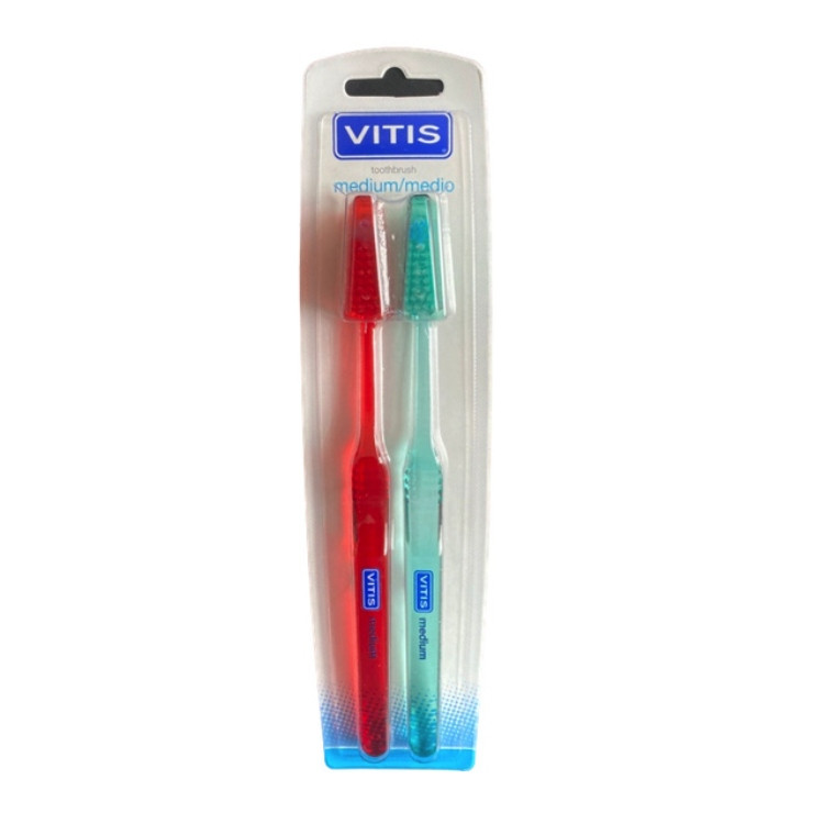 VITIS ČETKICE ZA ZUBE MEDIUM 2 KOMADA Namenjena za svakodnevnu oralnu higijenu. Normalna veličina glave četkice, okrugla, sa srednje tvrdim Tynex® vlaknima koja sprečavaju oštećenje gleđi i desni. Monotip prve zone- potpuno uklanja zubni plak (biofilm). Ergonomska i fleksibilna drška. Sadrži zaštitni poklopac. Zemlja porekla: Španija